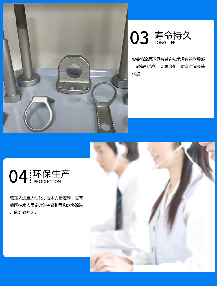 6.無污染和公害:達(dá)克羅在生產(chǎn)加工及工件涂覆的整個(gè)過程中,不會(huì)產(chǎn)生對環(huán)境有污染的廢水廢氣,不用三廢治理,降低了處理成本 。